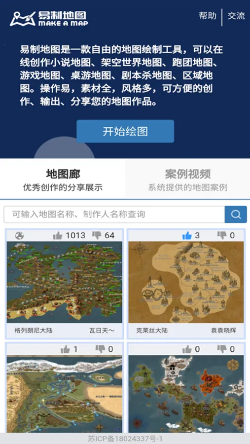 易制地图是一款自由的在线地图绘制平台,可以制作小说地图,架空世界地图,跑团地图,游戏地图,区域地图。操作易,素材全,风格多,方便您创作、分享、输出您的专属特色地图。