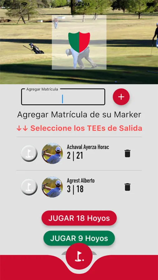Ambas opciones acceden al menu Agregar Jugador, donde ingresara la matricula de su compañero de juego y seleccionara el tee de salida de cada uno.