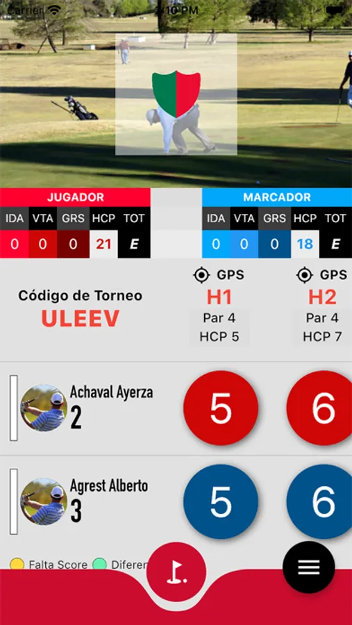 Vista completa de la Tarjeta de juego haciendo click en el nombre de cada jugador. Ahi encontrara todos los golpes y los detalles de los hoyos (como el Par, Handicap, etc).