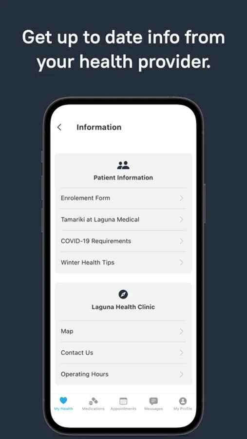 - Access your health summary, including diagnosed conditions, prescribed medications, immunisation history, and lab results
