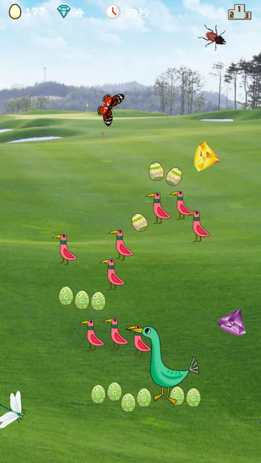 孩子们,跟上脚步,一起来学习捉小虫吧,看谁抓的虫虫最多最大!美丽可爱的小鸟们,围成各种形状,一会儿排成一字形,一会排成人字形,团结一致把虫虫都抓光光吧。噢,还有闪闪发亮的宝石呢,可记得捡起来哦~