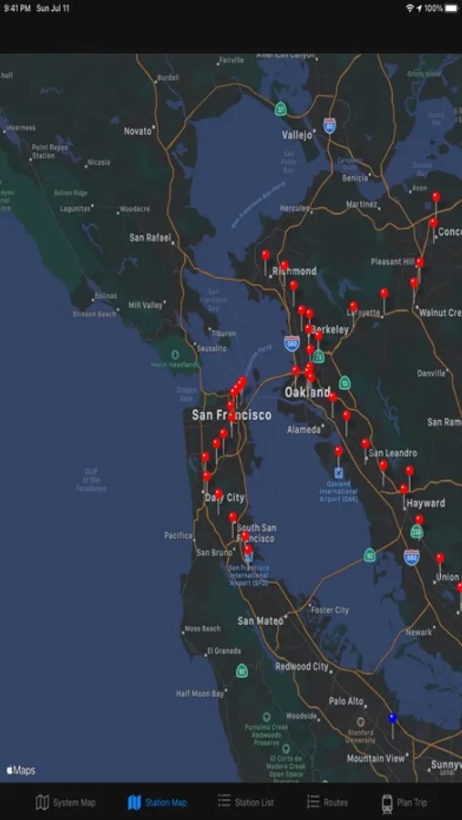 A wireless connection is required to use most features, as most data is updated in real-time. The BART station list, however once retrieved is available for offline use, this includes the interactive map and tabular station list. However, the ability to obtain departure times is not available as this data is obtained real-time from the BART server. Note: When BART is not in service at the selected station, you will receive a message indicating no departure time data is available.