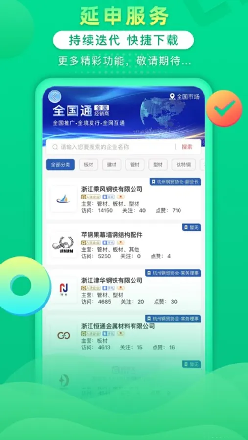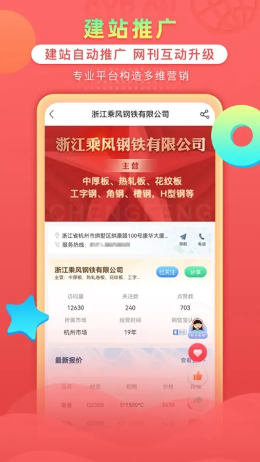 钢信宝APP以“移动营销+移动交易”为核心功能,为钢贸行业提供平台化服务,面向广大钢材及制品相关企业,专业提供买卖、营销、推广、交流、建站等多重功能,且界面操作极其简便,是业内钢贸人的好帮手。