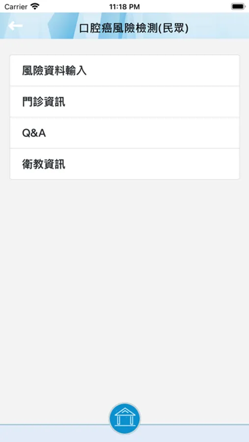 口腔癌風險檢測APP所提供的風險計分僅作參考之用,並不構成醫療忠告,亦非取代醫療院所提供的醫療服務。對於因使用、不當使用、不當理解或應用本APP提供的任何資料而引起的任何情況,口腔癌風險檢測APP概不承擔任何責任。在做出醫療決定前,請諮詢您的醫生,以獲得適當的檢查、治療、測試和建議。請勿倚賴口腔癌風險檢測APP資料作為自我診斷的工具。