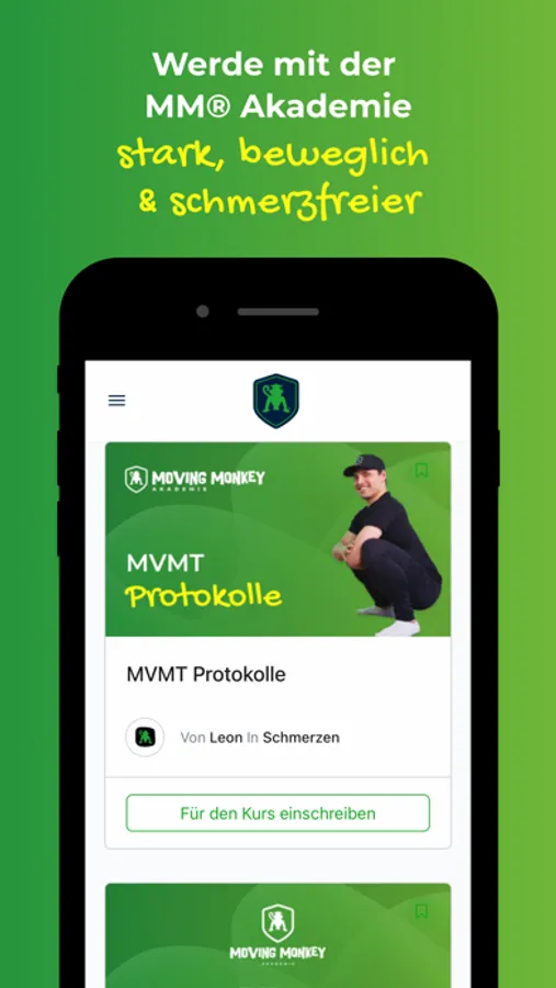 Für jeden, der noch keinen Online Kurs hat, kann über die App auf den Moving Monkey Blog zugreifen und alle Social Media Kanäle von Moving Monkey anschauen, um eine bessere Übersicht für das Lernen und Studieren der Inhalte rund um Mobility Training, Schmerzen verstehen & körperlicher Leistungsfähigkeit zu haben.
