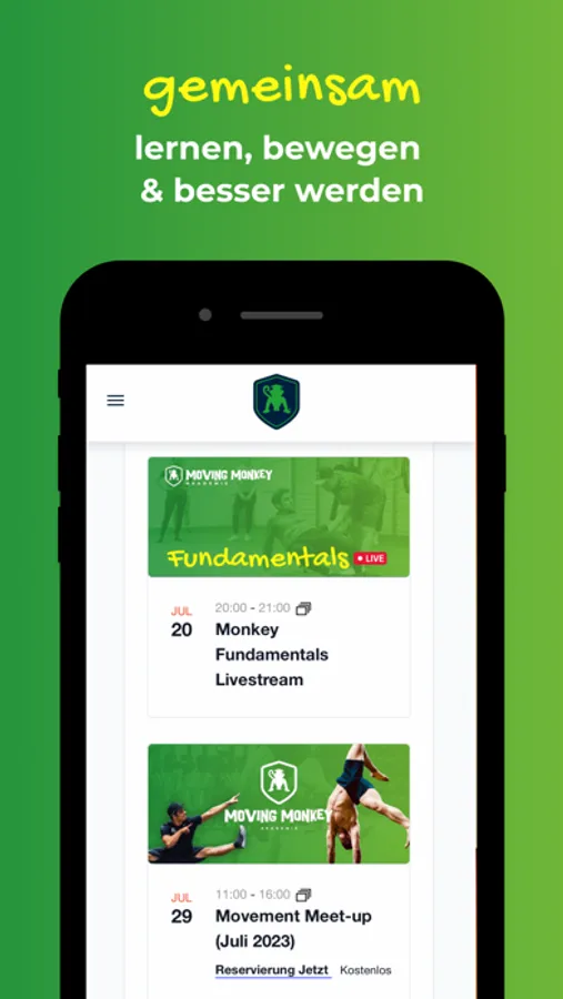 Mit dem Zugang zur Moving Monkey® Akademie wirst du Übungen, Konzepte & Strategien kennen lernen, die dich auf dem Weg zu einem stark, beweglich, schmerzfreien Körper unterstützen. Die Online Kurse sind nicht in der App enthalten, sondern werden auf unserer Webseite auf movingmonkey.de angeboten.