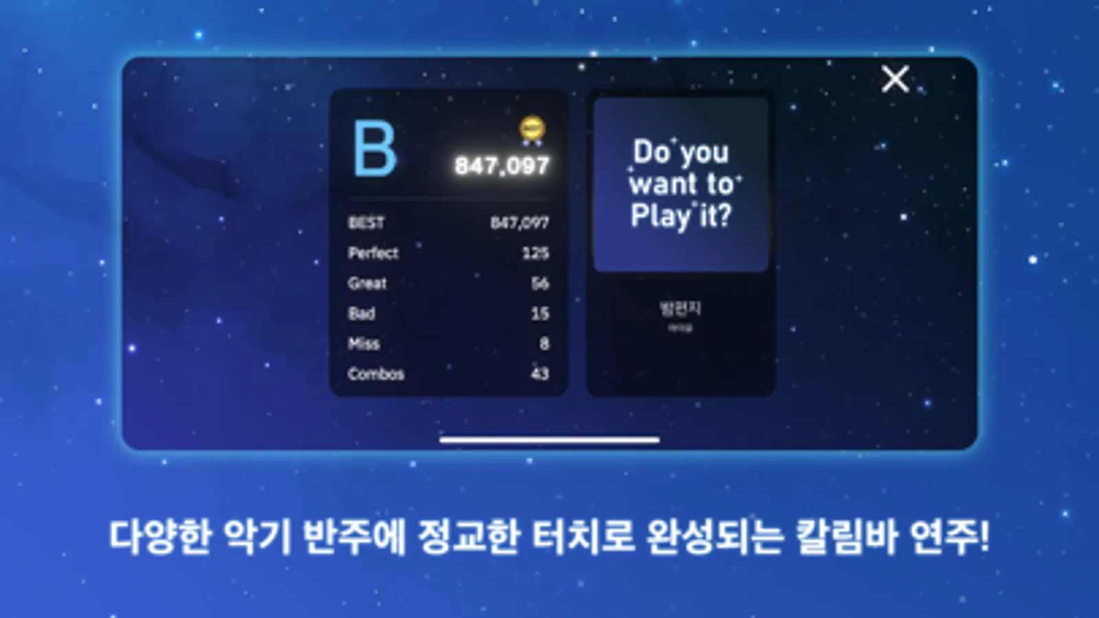 별이 빛나는 아름다운 배경과 감미로운 반주와 함께 칼림바를 연주해보세요~