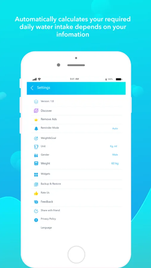 Light Water app will automatically calculates the hydration goal depends on your weight, gender & sleep time.