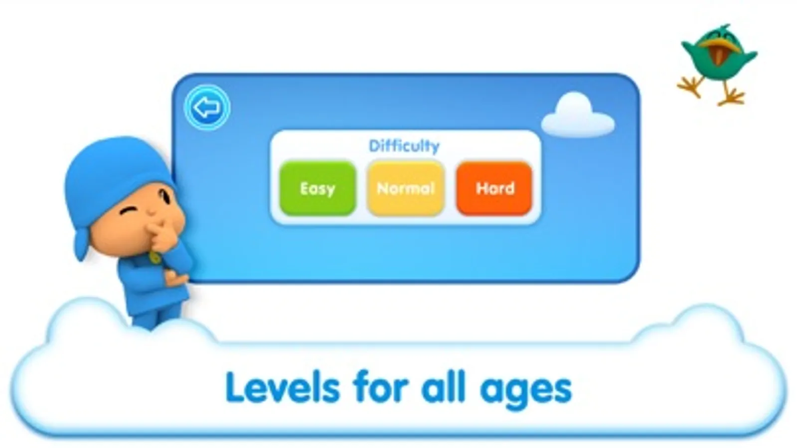Pocoyó Pop's "Game" mode has different levels for children ranging in age.