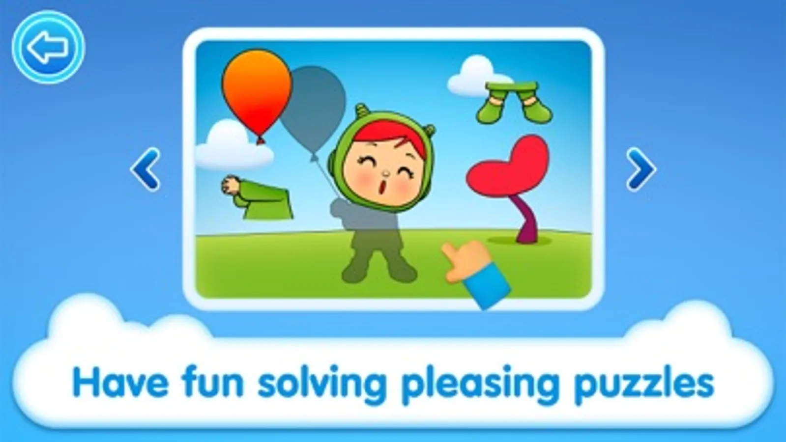 In the "Puzzles" mode players enjoy solving the characters' pleasing puzzles. They'll begin by tracing the outline, continue by colouring the drawing, and then learn how to place the pieces in the right places.