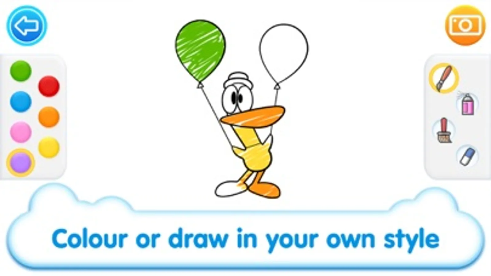 In the "Colour" mode, they can choose between 2 different options: 1) colouring the templates of their favourite characters or 2) drawing free style, without any set rules.