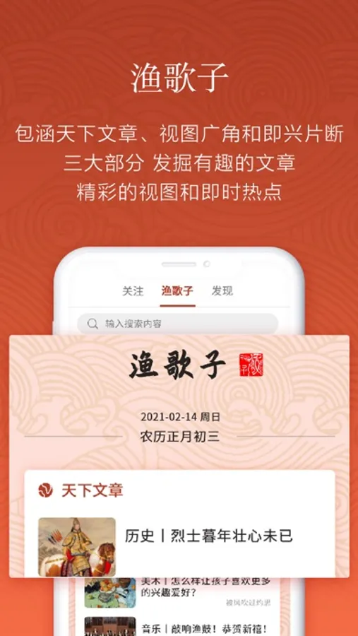 分置渔歌子移动微刊以集传媒世界信息之菁华,匠心打造用户喜闻乐见的电子版文摘日报。收四海资讯于一掌之内,揽大千世界于方寸之间。