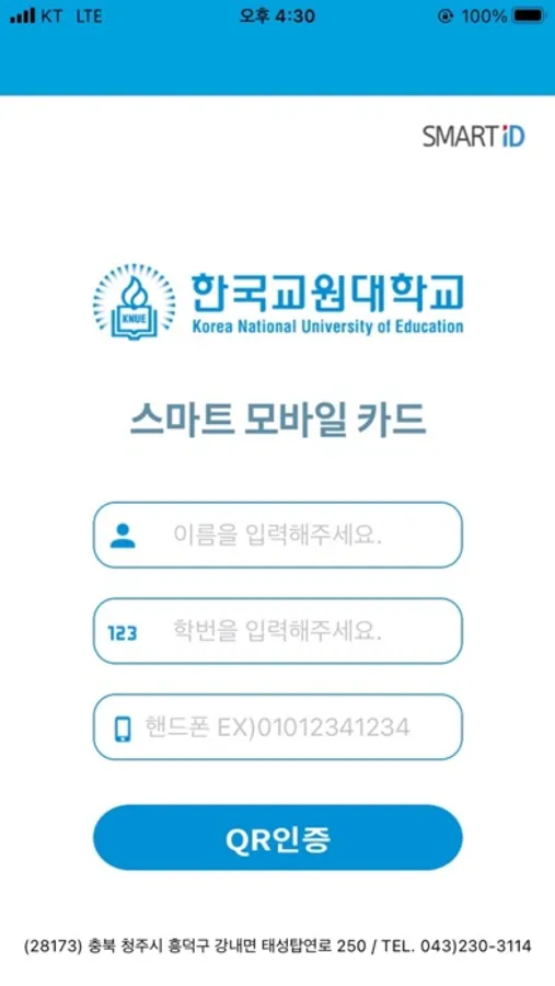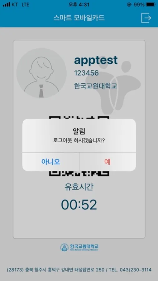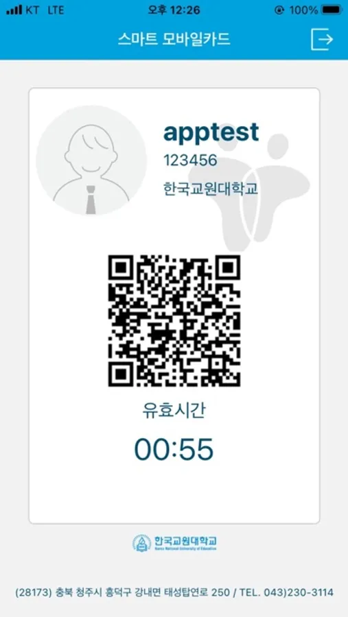 한국교원대학교 이용자들의 출입을 위해 제작한 어플리케이션으로 다음과 같은 기능을 제공합니다.