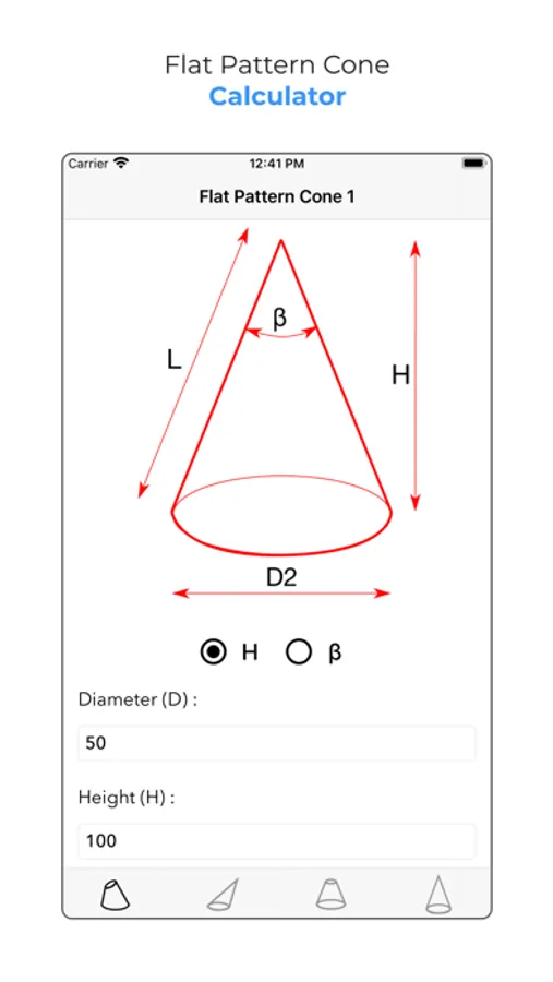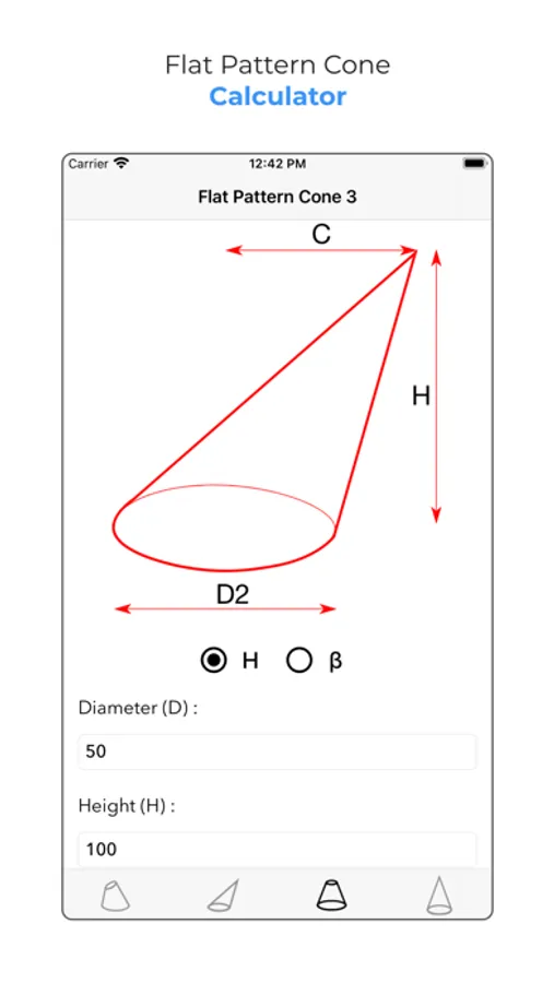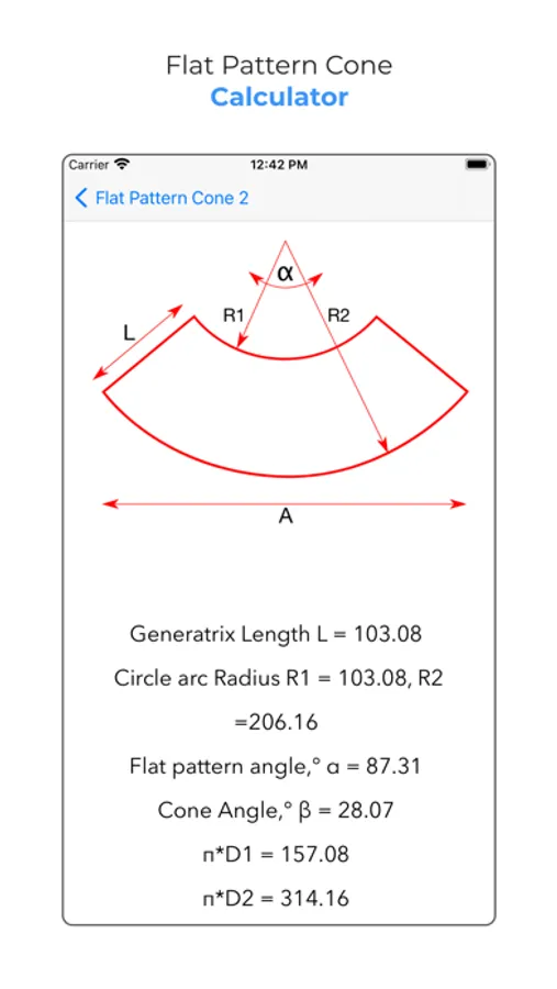 This application is a very good tool for students, engineers, and technical people to get all information for the cone to make it by using flat steel, aluminum or copper sheet...etc
