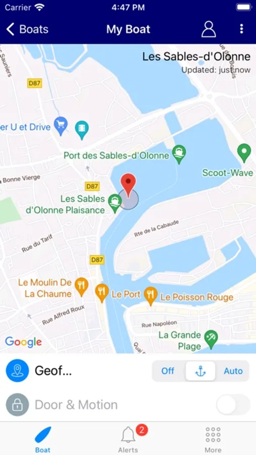 - Get a live view of your boat and monitor its geofencing and anchoring