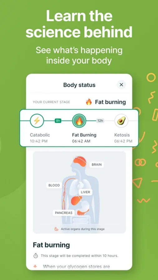 BODY STAGES - Learn what’s happening inside your body while you fast with Plus features.