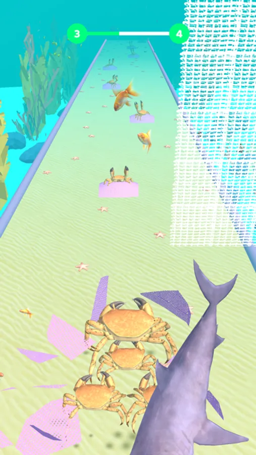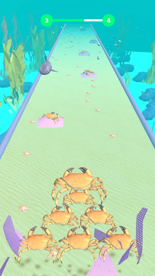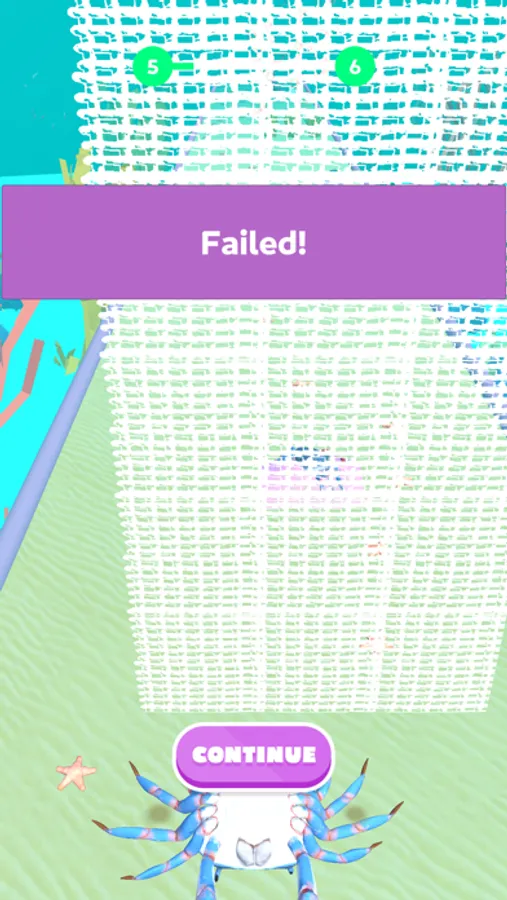 Baby crabs are caught in nets. Use your claws and save them. Stay away from sharks.