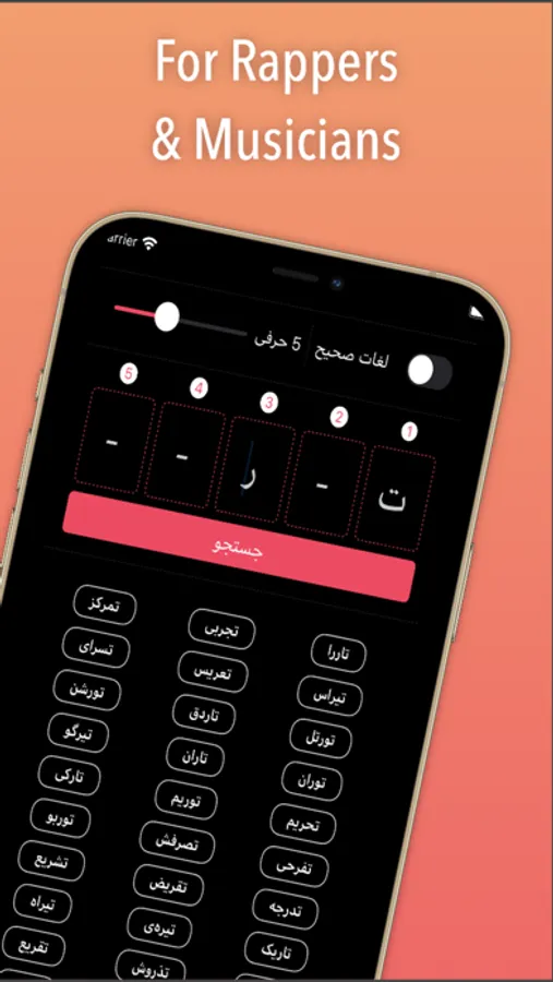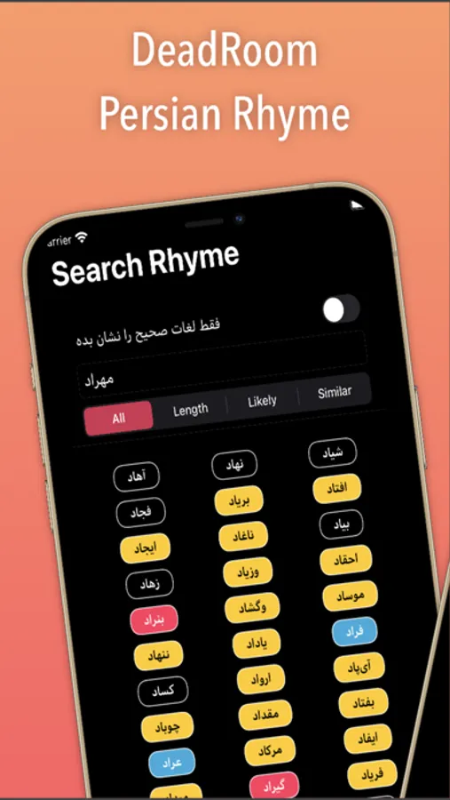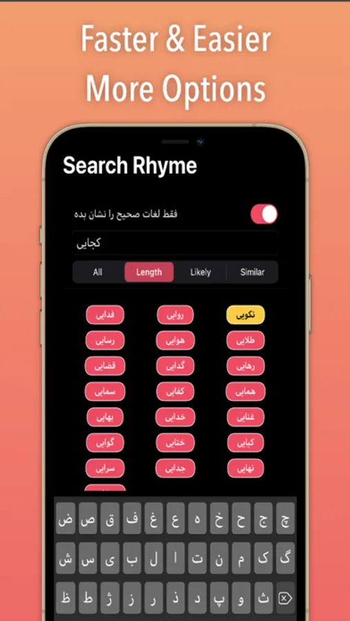 users can input a Persian word, and will get list of words which have the same rhyme as the word inputed.