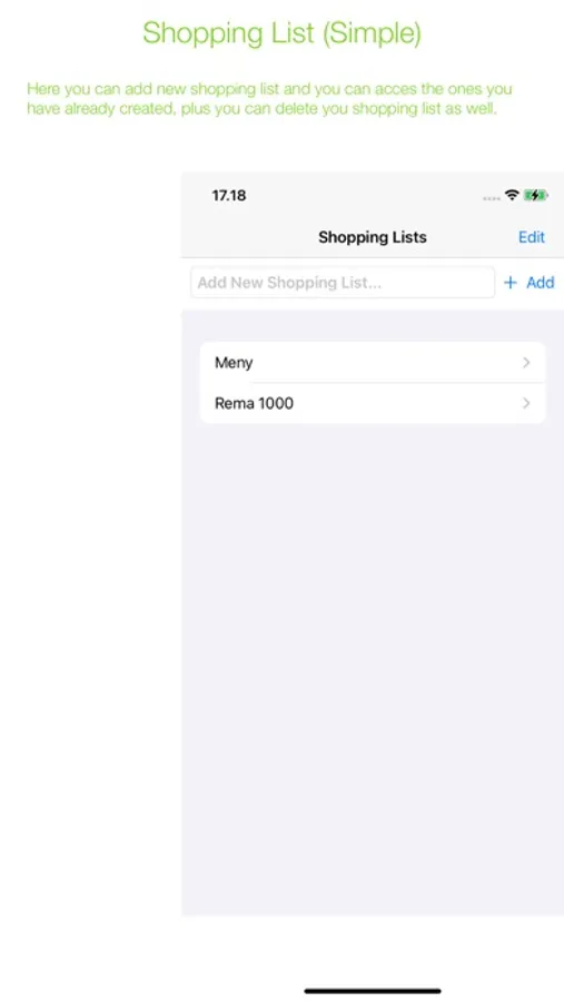 A simple Shopping list where you can create a shopping list for each of you shops you shop in.