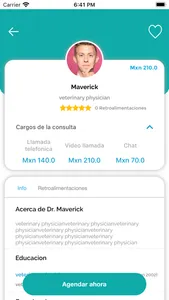 Después de descargar nuestra aplicación, los padres de mascotas o papás de perrijos pueden reservar una cita en línea a través de chat, audio (llamada telefónica) y videoconferencia con uno de los veterinarios certificados disponibles de su elección.