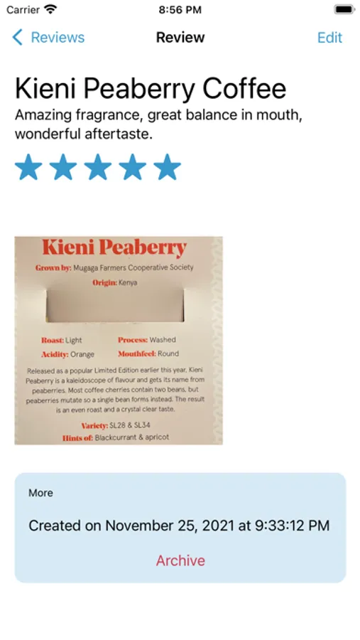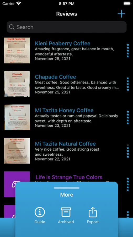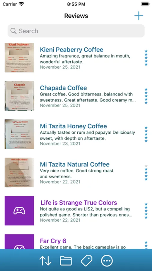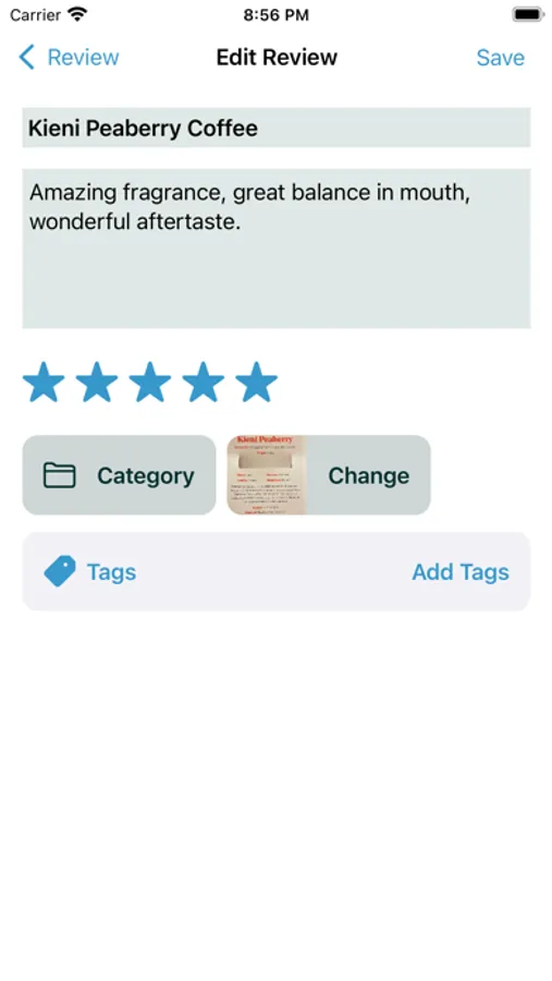 You can attach a photo, put it in a category and add tags. Later you can search for reviews or browse by category or tag.
