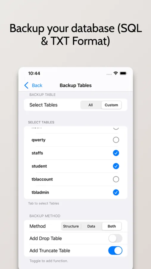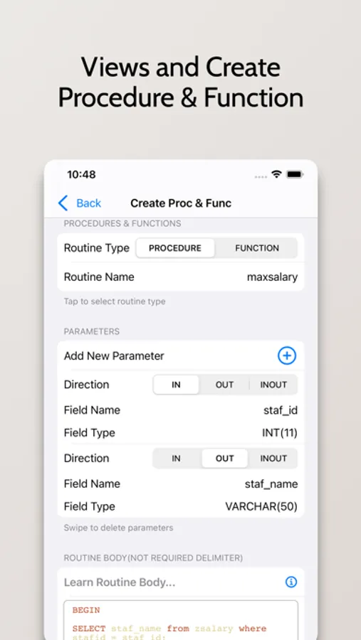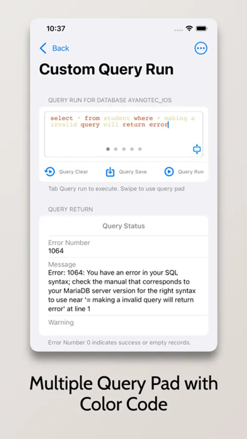 Use MySql Elite is powerful database client tool within your hands which is used to connect securely all MySQL databases at one place in your handheld apple device. And the best thing is, none of your MySql Elite data is stored on our servers including username, password,server name and everything. Instead, it is stored locally on your device sync with your iCloud. Also connects your database server directly through the secure connection with your given credentials. So, 100% secure and safe handle your personal database data in your hand device.