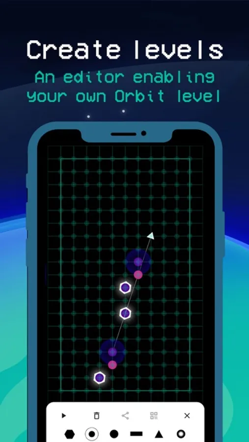 Fancy for generating your levels? Great! Included is a full level editor, enabling your very own Orbit-level creations. Easily share your levels with your friends!