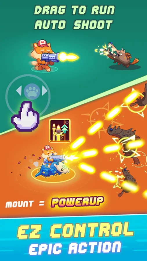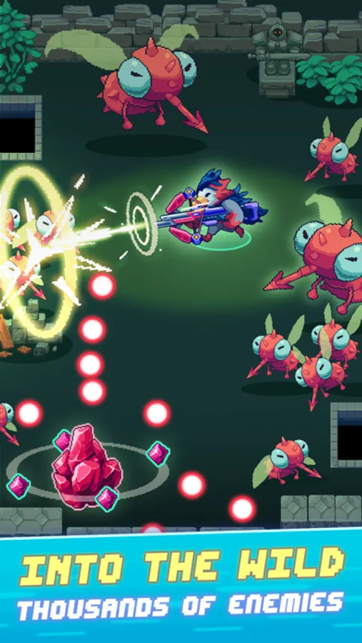 - A true Roguelike experience with tons of random and unique powerups to mix-and-match