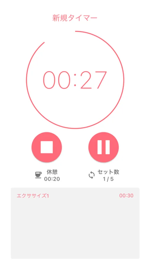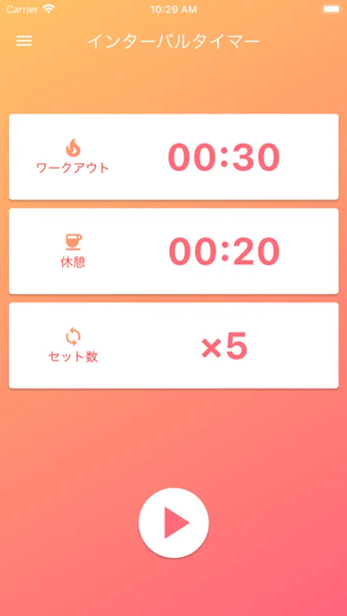 操作は簡単。運動時間、休憩時間、セット数を入力するだけ。