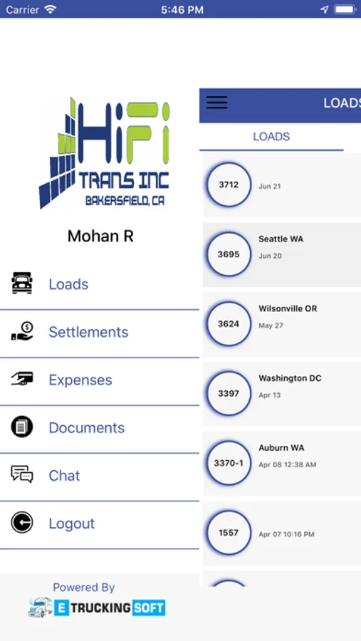 Hifi Trans Inc app has the ability to see the driver loads, update load status, upload documents, settlements and manage the expenses.