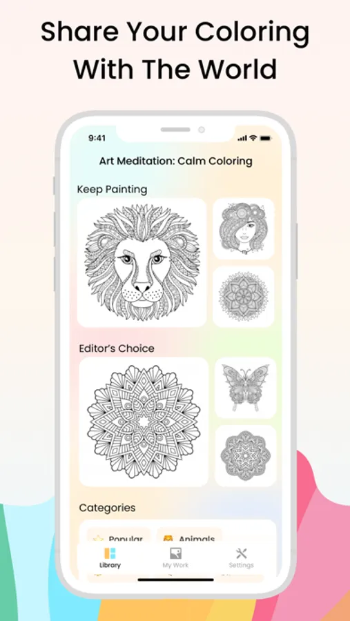 Adults or kids, artists or not, Art Meditation enables everyone to explore their creativity and heal. Open calming music, choose an artwork that resonates with your mood and join the wonderful world of coloring.