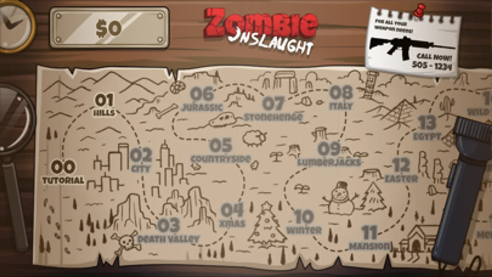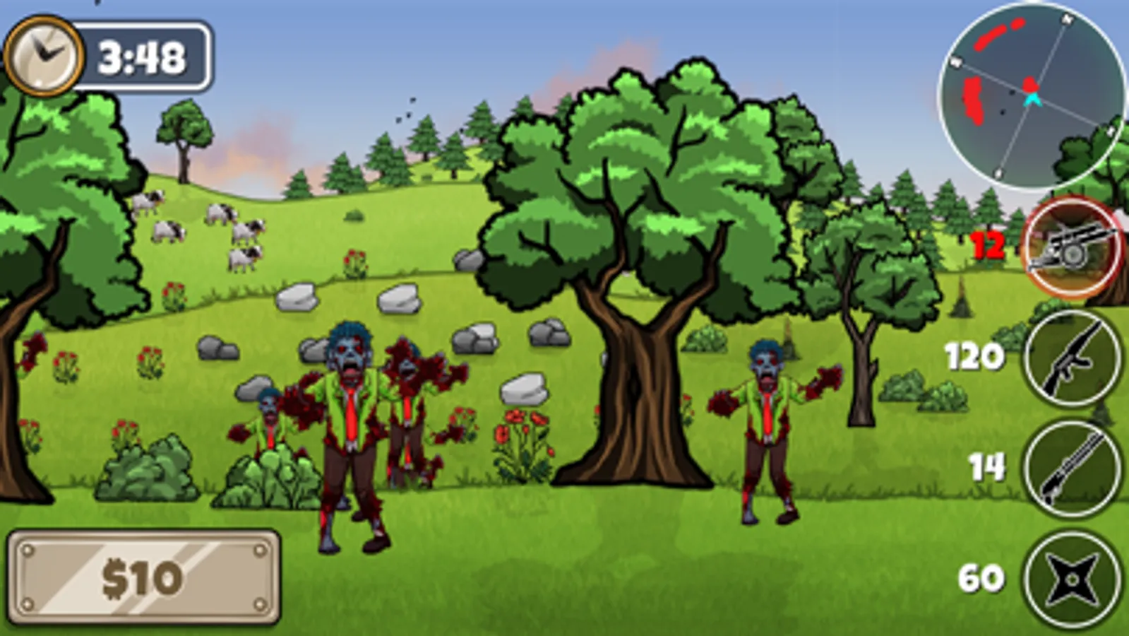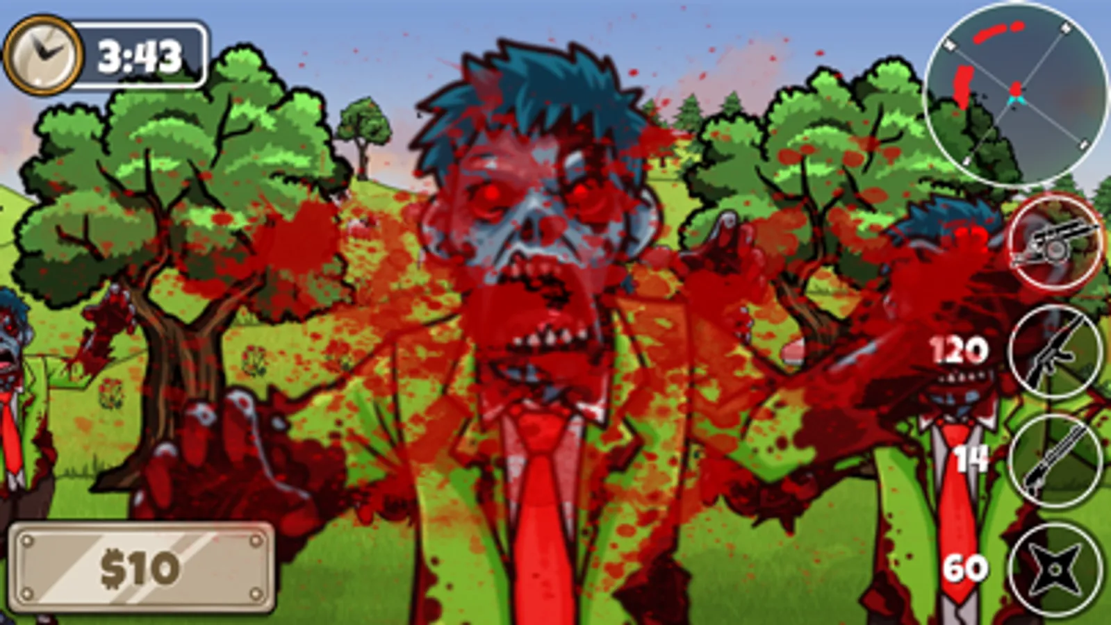 Survive waves of zombies - and it's not just zombies, it's zombie dogs, trolls, frogs and spiders too! Work your way through the levels on your survival map, and buy extra more powerful weapons with the money you earn.