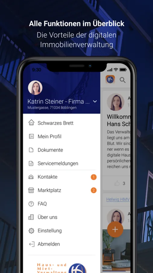 Als Kunde der Haus- und Mietverwaltung Helwig GmbH profitieren Sie von einem besonders innovativen Kundenservice, der Ihnen viele Freiheiten bietet. Mit der Helwig HMV App können Sie uns rund um die Uhr Anliegen und Schäden inklusive Fotodokumentation per Smartphone melden. Zusätzlich stellen wir Ihnen eine digitale Dokumentenmappe mit wichtigen Dokumenten für Ihre Immobilie(n) zur Verfügung. Über das digitale schwarze Brett informieren wir via Push-Nachricht proaktiv über wichtige Informationen rund um die uns anvertrauten Immobilien.