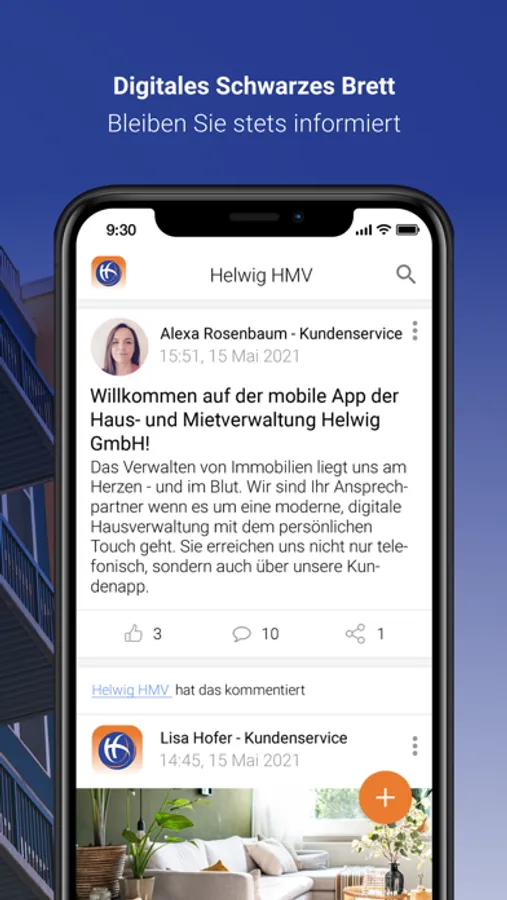 - Transparent: Dokumentation ist für uns die “halbe Miete”. Mit der Helwig HMV App erhalten Sie alle wichtigen Informationen zu Ihrer Liegenschaft direkt am schwarzen Brett und können diese kommentieren.