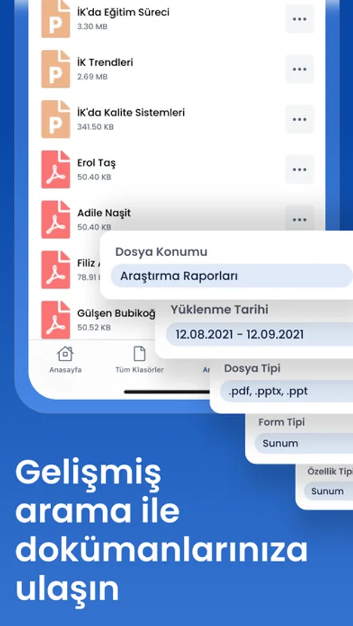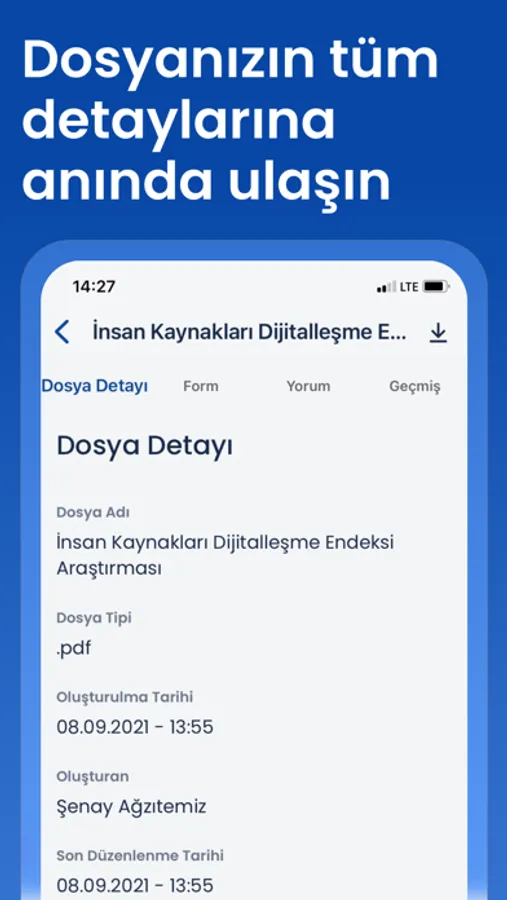 Documents are categorized by folders defined in the application. Folder and document authorizations are managed with permissions. Documents are uploaded to the system as single/multiple or scanned. The changes you make on the document are followed by the versions. It accelerates access to documents with its advanced OCR (Optical Character Definition) feature and detailed search function. With the transfer feature, documents are shared securely with users inside and outside the system. Every process made through the application can be tracked.