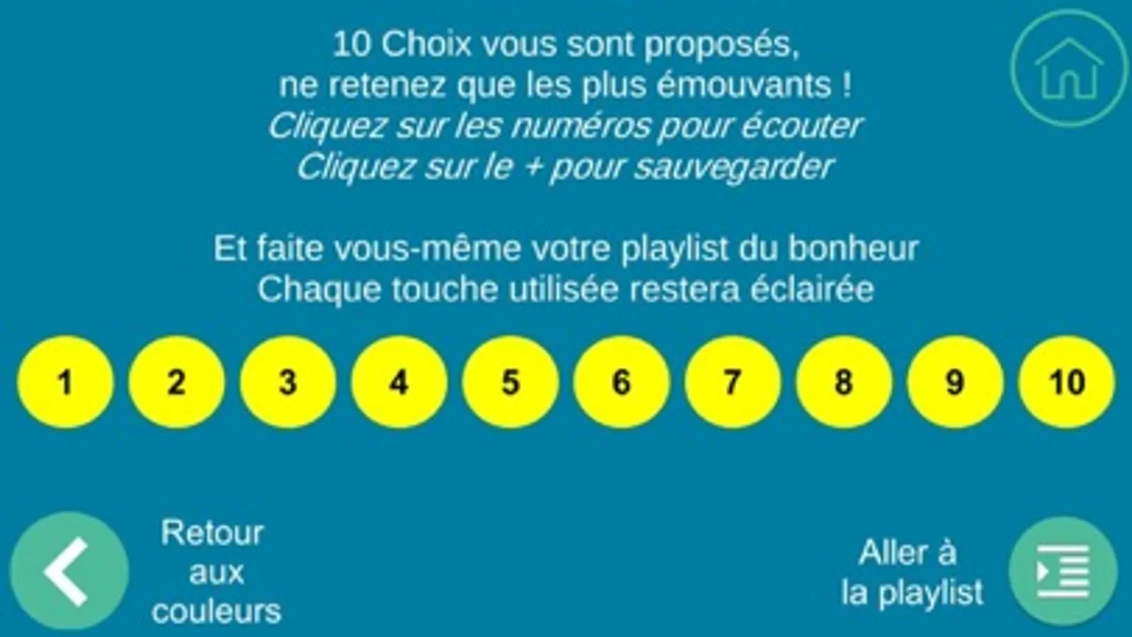 Cette application permet d'écouter et de se constituer une playlist à partir d'une cinquantaine d'extraits de chansons anciennes.