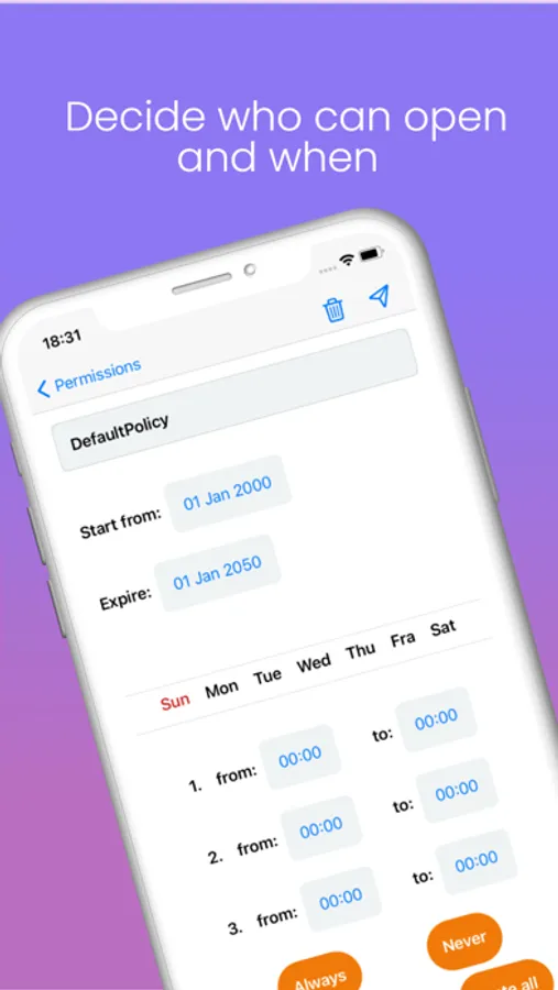 Service allows time-based access controls with keys expiration time and weekly policies that can be defined per user and per access.