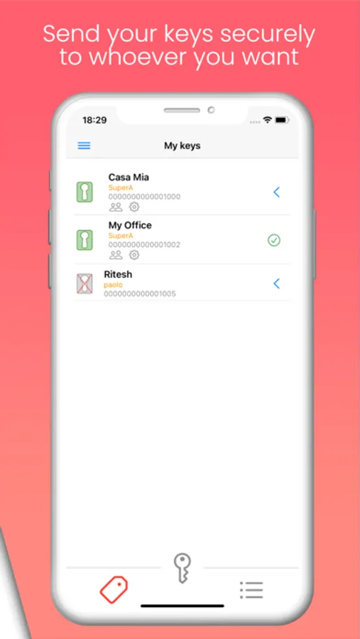 Keys can be created, delivered to users, activated, deactivated and destroyed by means of the app. All this securely, online and without any physical interaction between users.