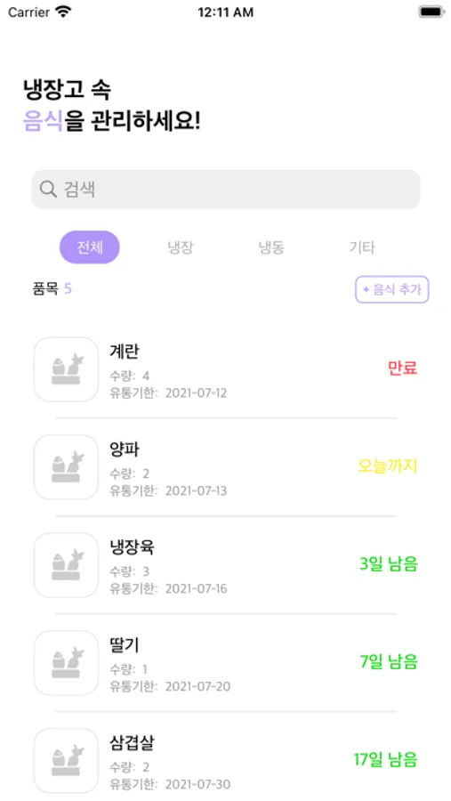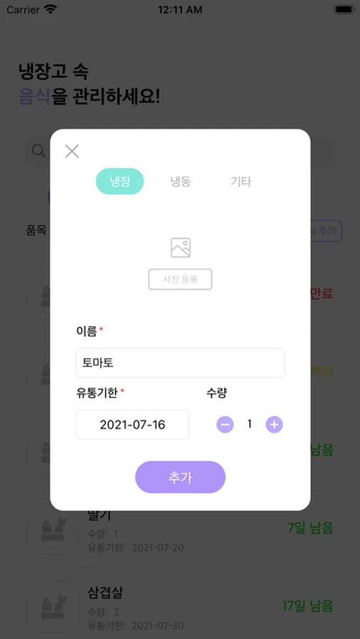 냉장고 속 음식의 유통기한을 관리 해주는 앱입니다.