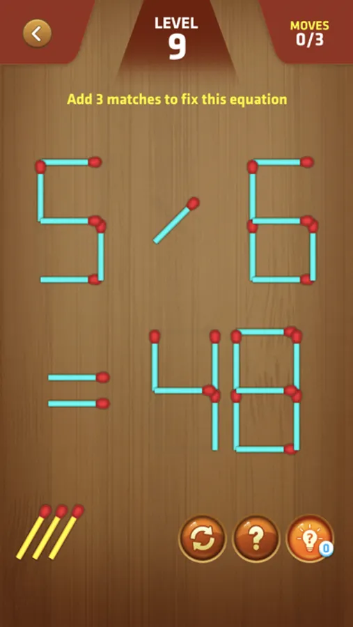 Solve matchstick puzzles by moving, adding and removing matches until you find the right solution.