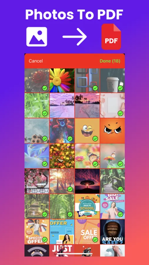 With Photos to PDF Converter, you can create beautiful PDF documents in a matter of seconds. Forget about overcomplicated apps with nonsense features. With this app, you will be at the top of productivity.