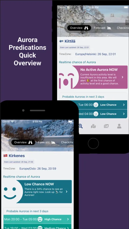 Enjoy hunting auroras with AuroraReach and find your next aurora destination with this app.