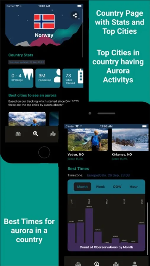 We track ~24K cities around the world for aurora activity and weather conditions. It is easy to get started by subscribing to alerts for multiple cities and get alerted on the app for free. Realtime aurora map shows the aurora activity on the map and you can interact with the map to select the cities we are tracking from map and having activity at that time. Aurora Travel destination searching is easier with this and with our city search page you can search by city or country for viewing the city aurora forecast report and subscribe to cities for alerts. You can favorite the cities for quick accesses in the future even if you are not registered with an account.