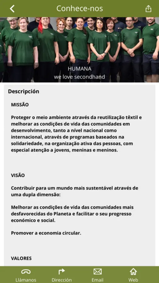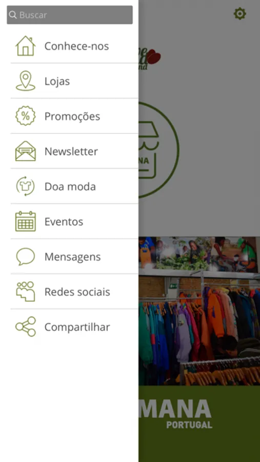 Informação sobre a localização das lojas e pontos de doação de moda e calçado, sobre a organização e a sua atividade, link para as redes sociais e sites de interesse.