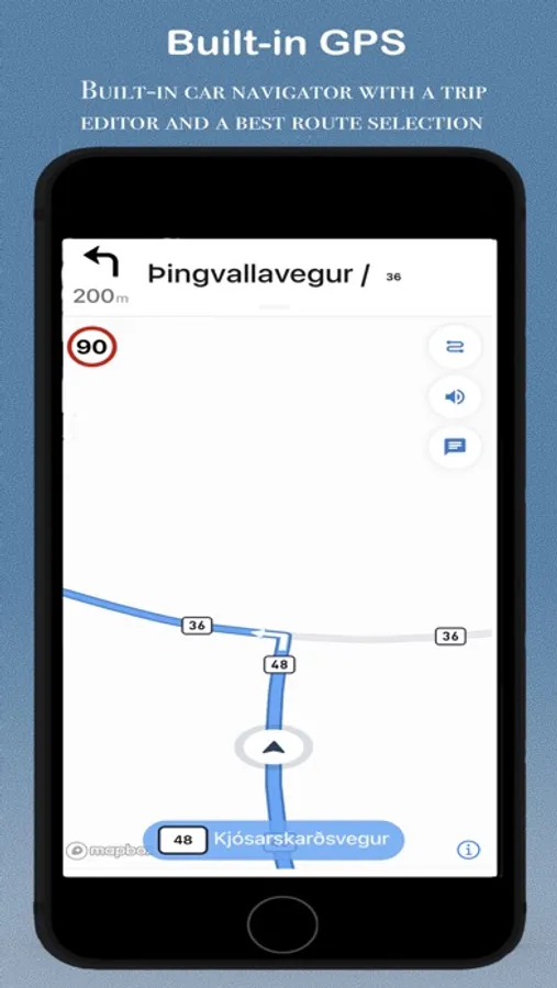 The All in One_Iceland mobile guide has a built-in GPS navigator. It will help you build a route and guide you to your goal. Also in the navigator there is a function of "points of interest in the vicinity", which displays the points of interest along the way you travel.