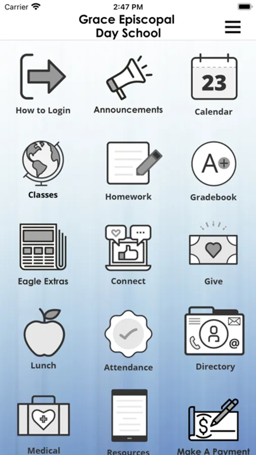 This app is the one-stop-shop for Grace Episcopal Day School families. It provides anytime, anywhere access to all of the tools, content, and communications you need to stay connected and engaged with Grace Episcopal Day School. Check grades and assignments, order lunch, stay up to date with the latest school communications, view the school calendar, and so much more.