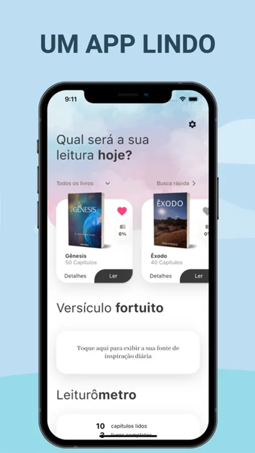 O app foi pensado para que você acompanhe seu progresso através do Leiturômetro. Você poderá também destacar versículos, compartilhá-los na sua rede social favorita e inspirar outras pessoas.