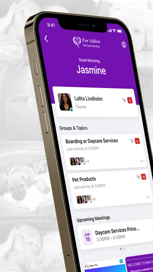 The Paw Addicts app makes it easy to communicate information about pets, service requests, team meetings, and more.
