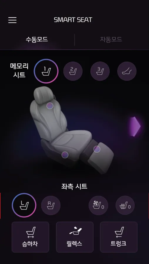 0.01% VIP를 위한 Smart Seat는 카니발 하이리무진 4인승 2열 시트 편의를 위한 스마트폰 어플리케이션입니다.