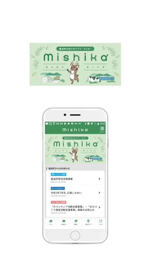 鹿追町お知らせアプリ「mishika (ミジカ)」は、鹿追町とつながるすべての人が利用できる鹿追町公式の情報提供アプリです。